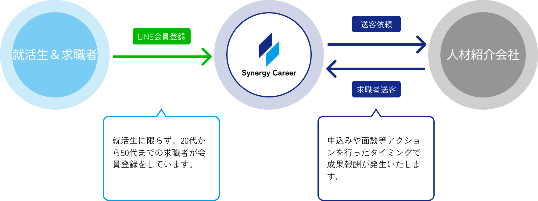 公式LINEアカウントを活用し、求職者を人材会社につなぎます。